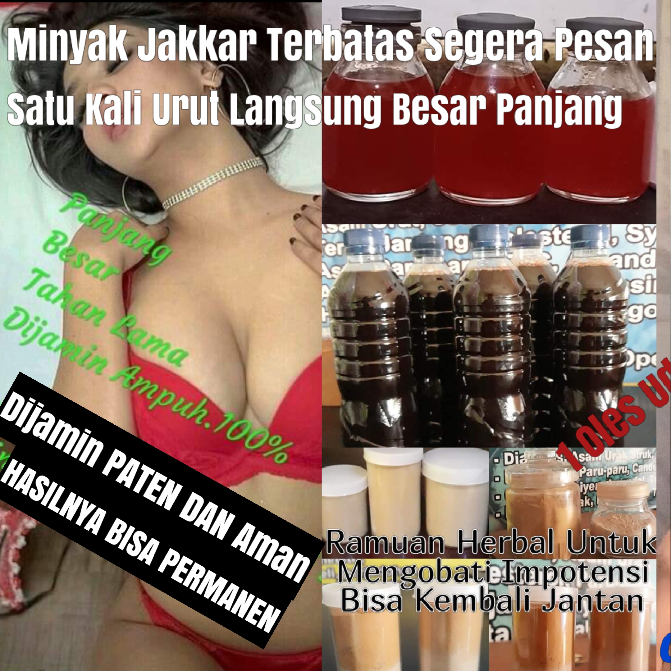 Negara kita menjadi salah satu pusat tanaman obat di dunia. Ribuan jenis tumbuhan terapis, tumbuh subur di seluruh pelosok negeri. Belum semua jenis tanaman itu kita ketahui manfaat dan khasiatnya Sudah Banyak Terbukti Sepanjang Masa, dan Minyak Jakkar Khususnya Untuk Menambah Ukuran Penis Besar Dan Panjang. TRADISIONAL, sampai saat ini dikembangkan secara OPTIMAL. Produksi MINYAK JAKKAR DAN RAMUAN HERBAL ALAMIAH TRADISIONAL lebih banyak diproduksi oleh home industrI.