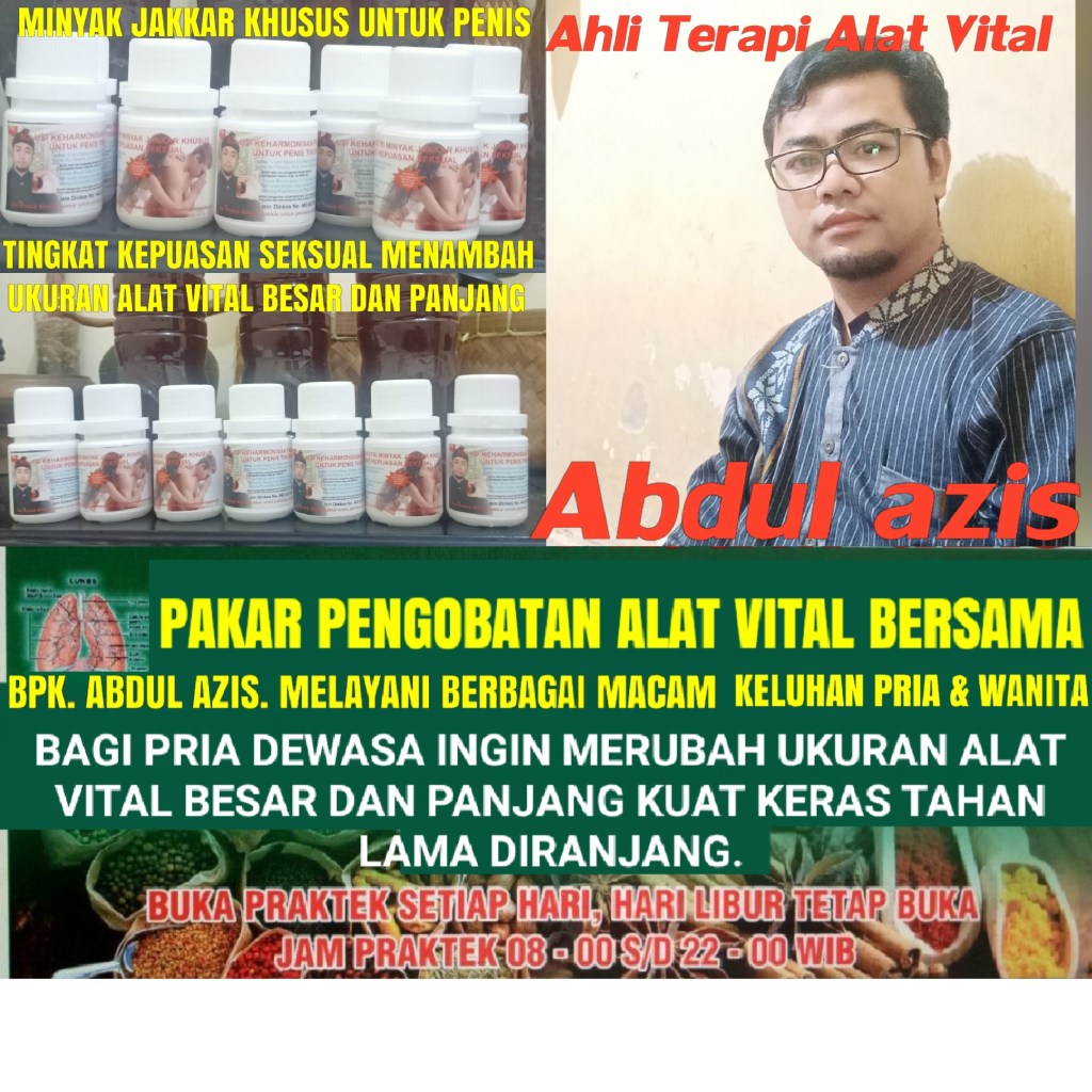Klinik Pengobatan Alat Vital Dikampung Bersama BPK Abdul azis, Udah Gak Asing Lagi Di Indonesia Dan Di Luar Negeri Pun Udah Pernah Tampil Tentang Terapi Alat Vital. Dan Untuk Menambah Ukuran Kejantanan Bisa Disesuikan Besar Lingkaran 15cm 17cm 18cm 20cm. Panjang Diameter 2,3cm 4cm 5cm 6cm. Bisa Menambah Durasi Ereksi kuat keras tahan lama. Dan khasiatnya saat dapat dikategorikan menjadi 40 kerjasama seluruh pihak yang terkait.Kerjasama macam jamu jaklcar, obat herbal Tradisional, Hasil tanaman Bpk ABDUL AZIS.