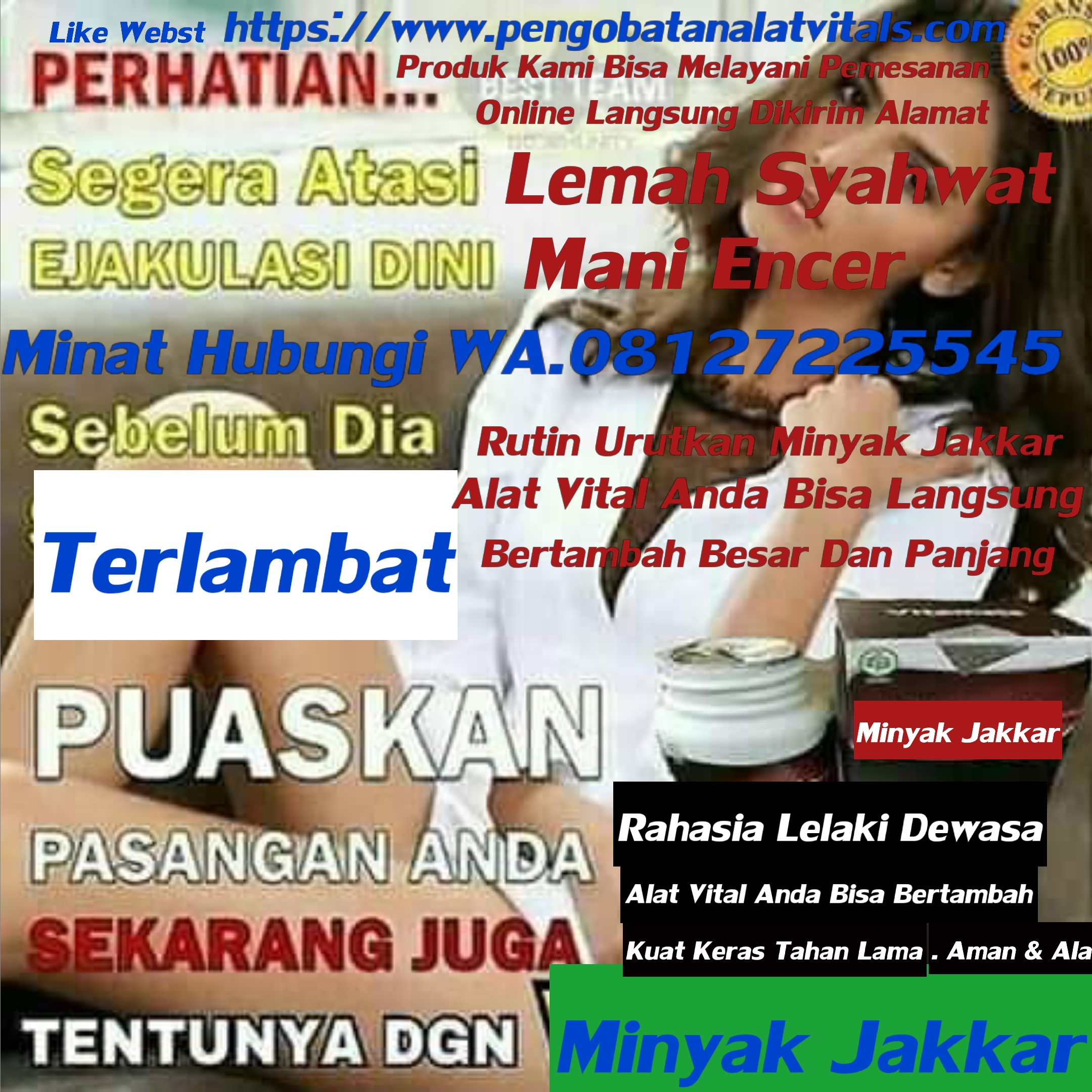 MEMBESARKAN PENIS MEMANJANGKAN PENIS MENGUATKAN DURASI EREKSI MENGOBATI LEMAH SYAHWAT MENAMBAH STAMINA DI RANJANG MENGOBATI IMPOTENSI, BISA NORMAL KEMBALI MENGOBATI EJAKULASI DINI MENGOBATI SEPERMA ENCER BISA MENGOBATI BEKAS SUNTIK SELIKON